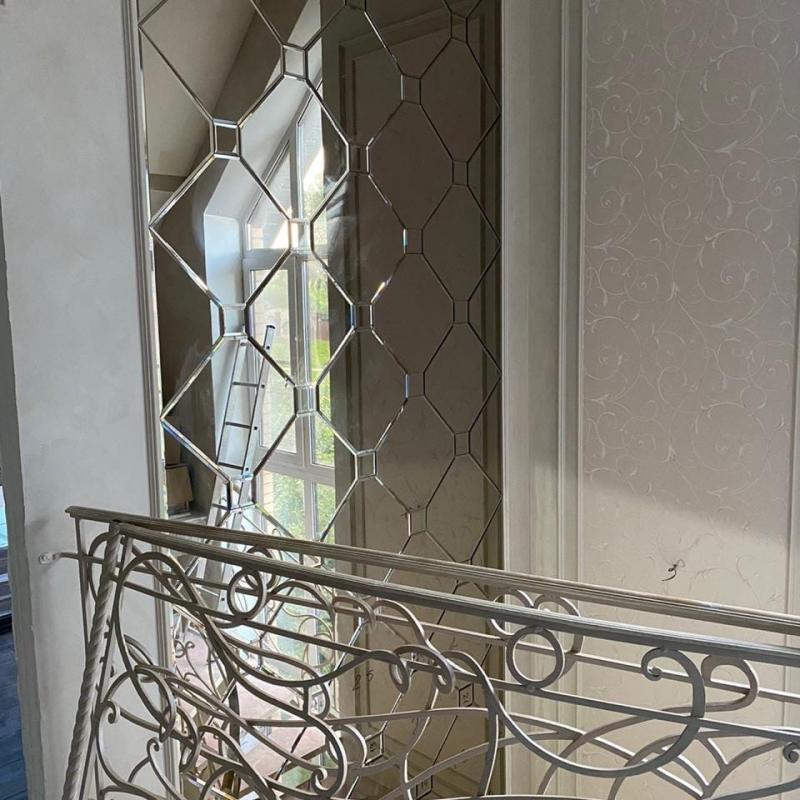 Использована зеркальная плитка "вытянутый ромб" с фацетом.